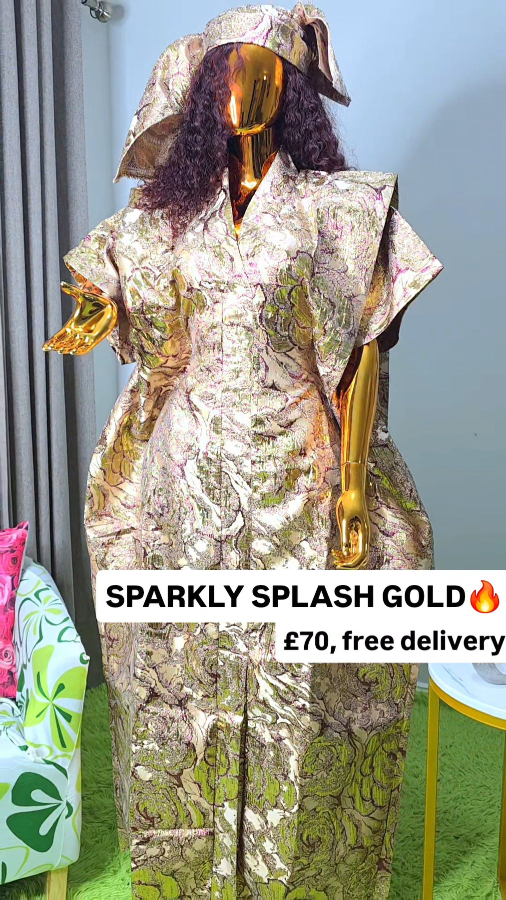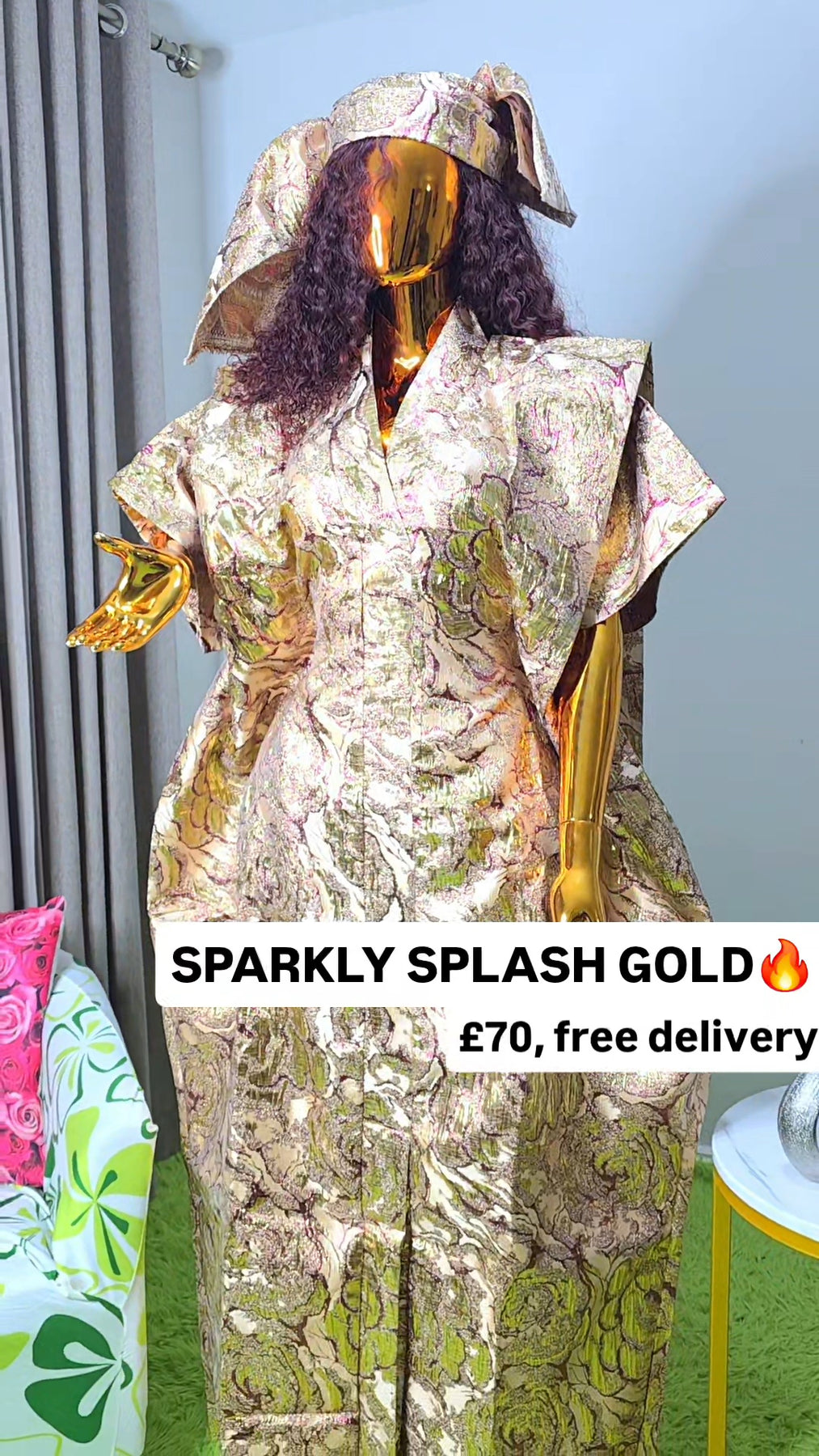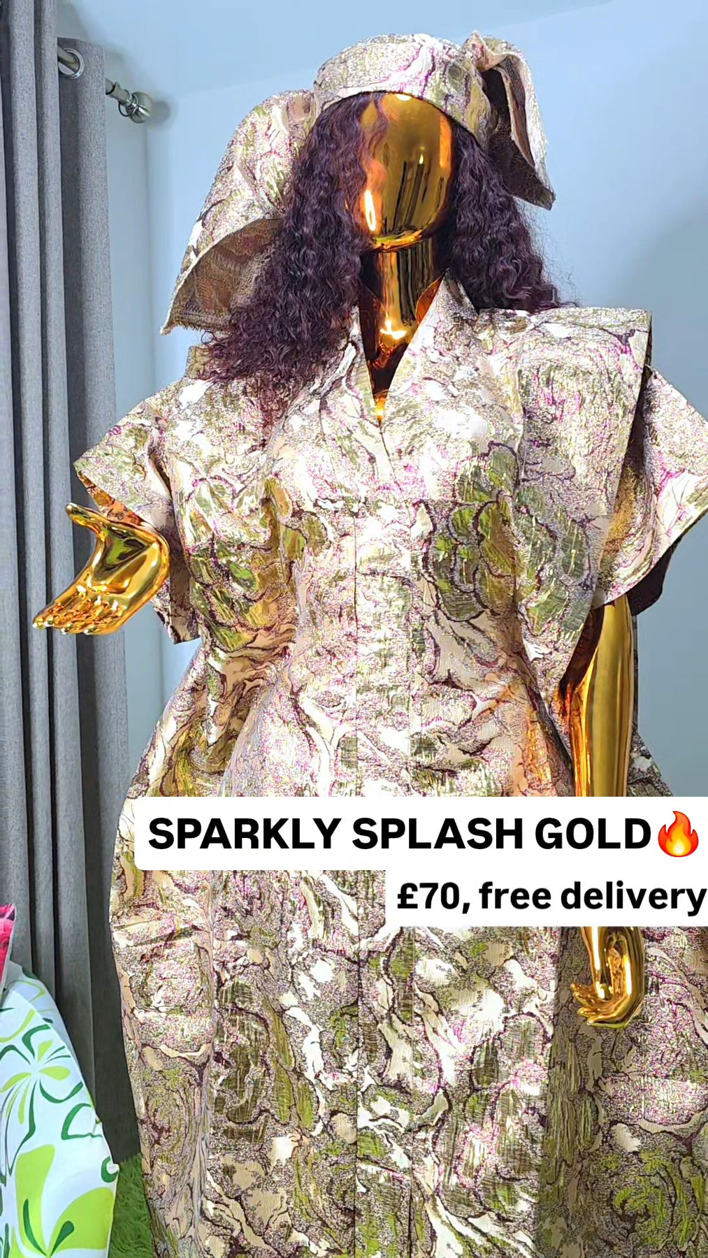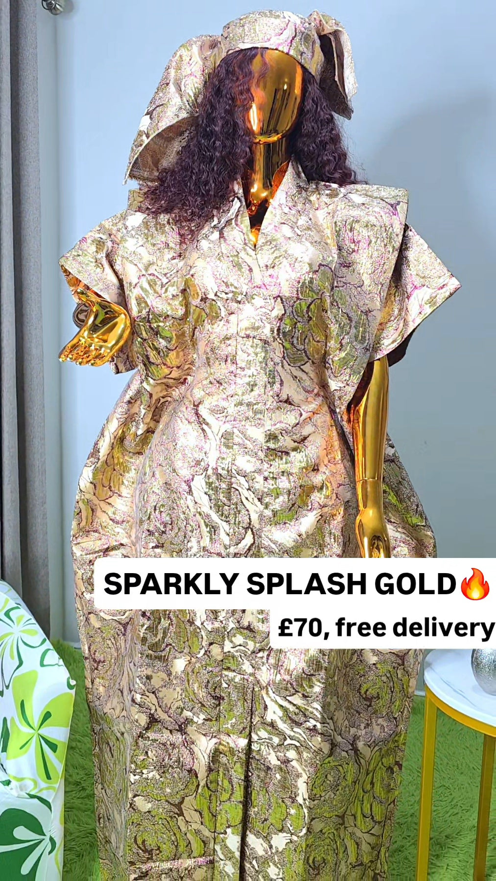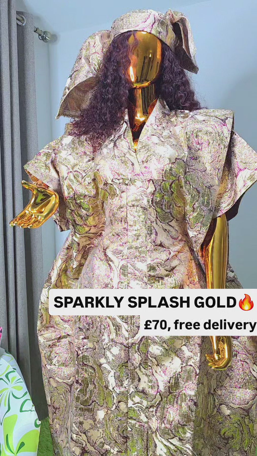 Add a glow of luxury to your wardrobe with Sparkly Splash Gold, a premium African brocade boubou/kaftan designed for women who love graceful glam. This elegant piece features a rich gold fabric with a sparkly finish, giving it a luxurious shine that stands out beautifully without being loud. Effortless, comfortable and classy — it is perfect for both special occasions and modest luxury fashion styling.