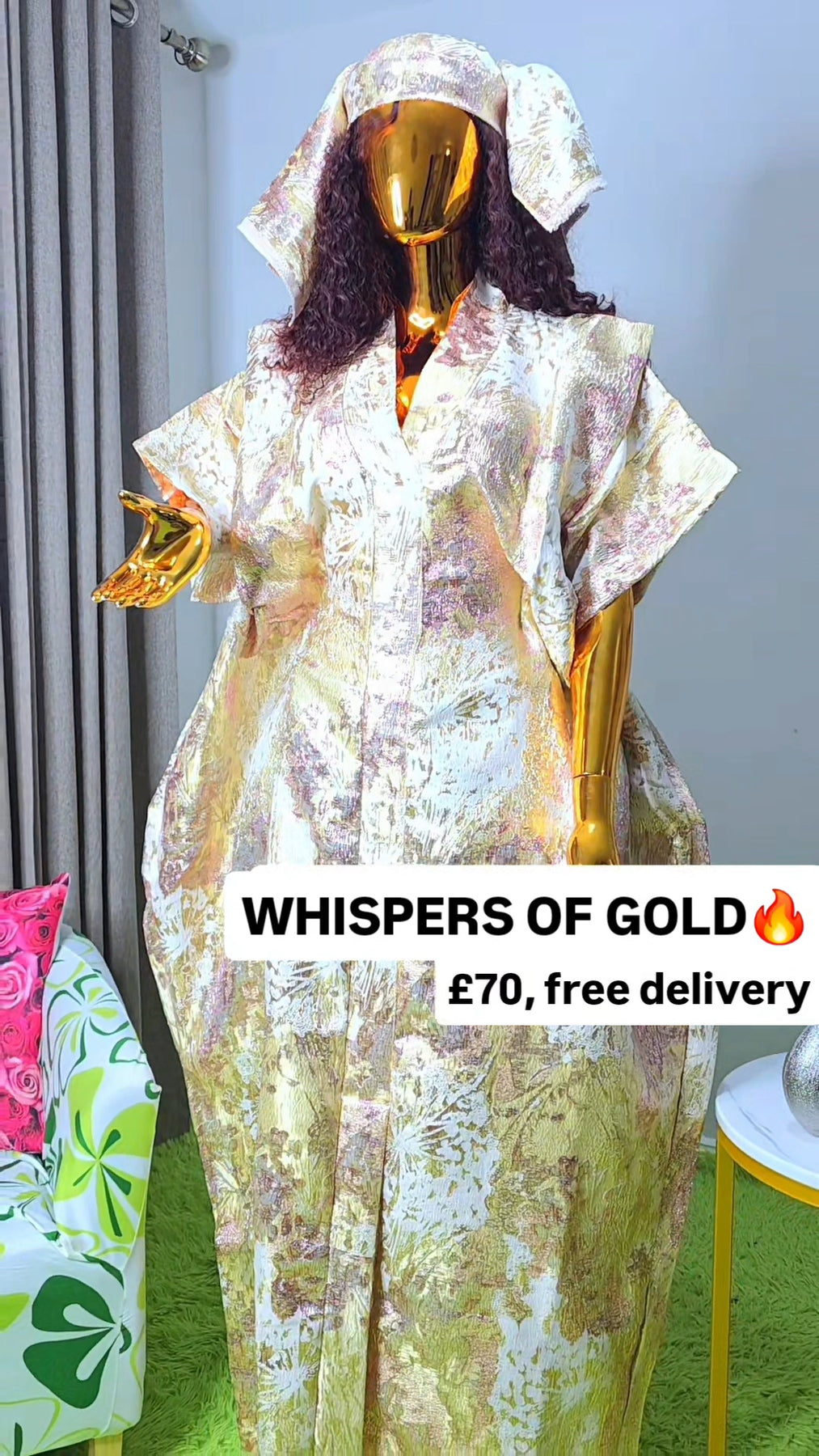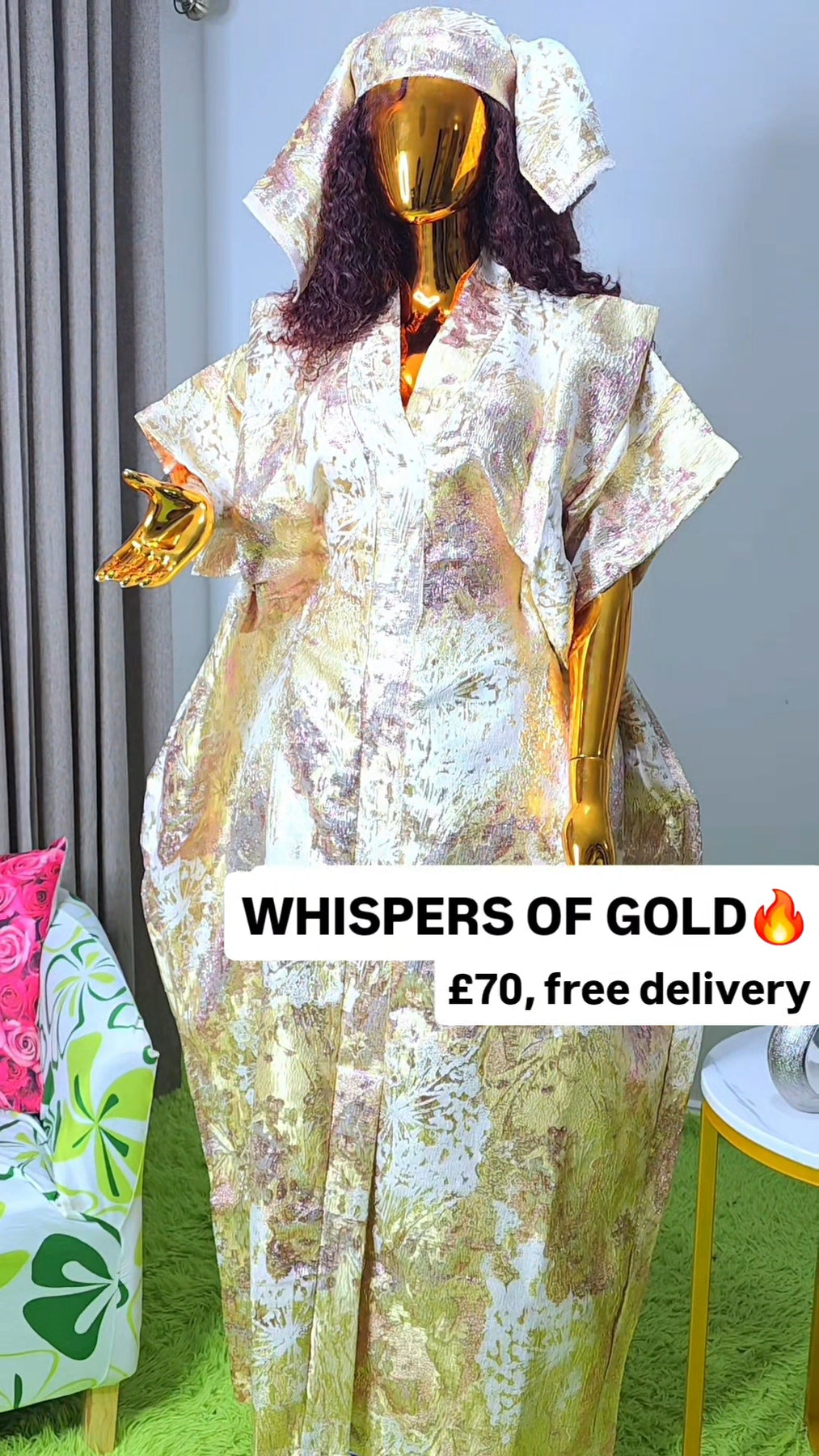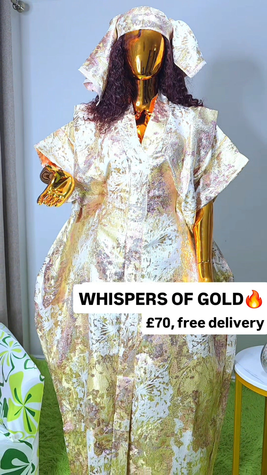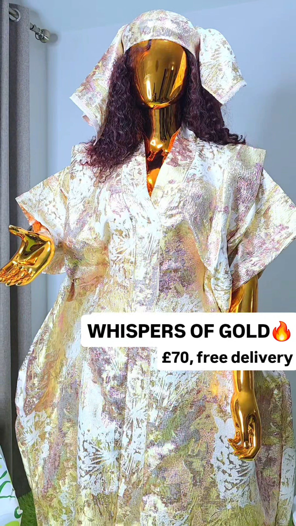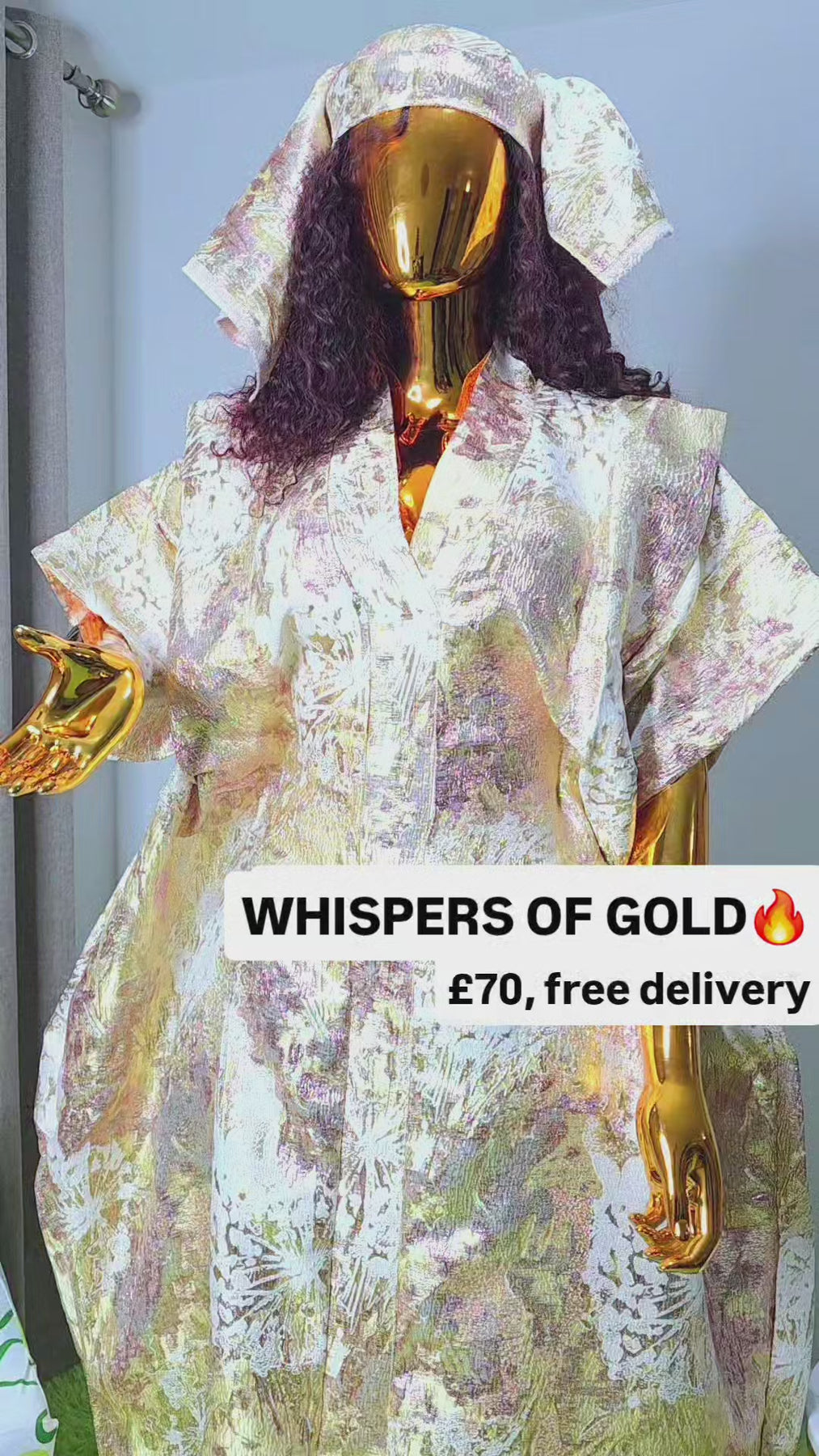 Whispers of Gold – Luxury Brocade Kaftan/Boubou | One Size Fits All | Free 24-Hour UK Delivery