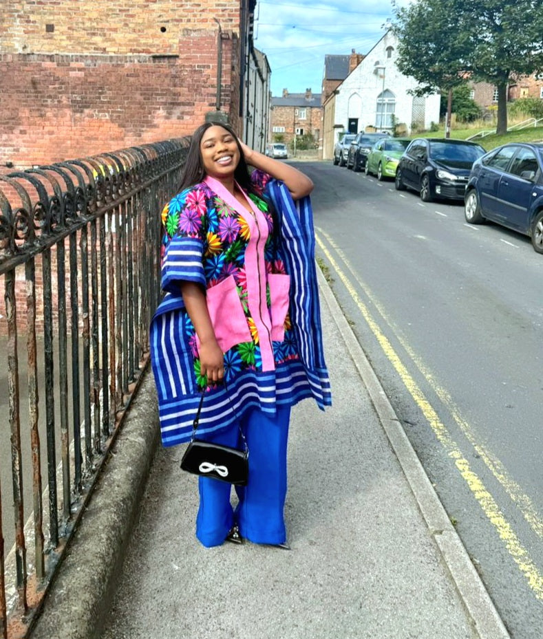 Turn heads effortlessly in our Blue Ankara Aso-Oke Buga Pants Set, a bold fusion of authentic Ankara fabric and luxurious Aso-Oke detailing. Designed exclusively for the modern African woman, this two-piece outfit exudes confidence, culture, and class.