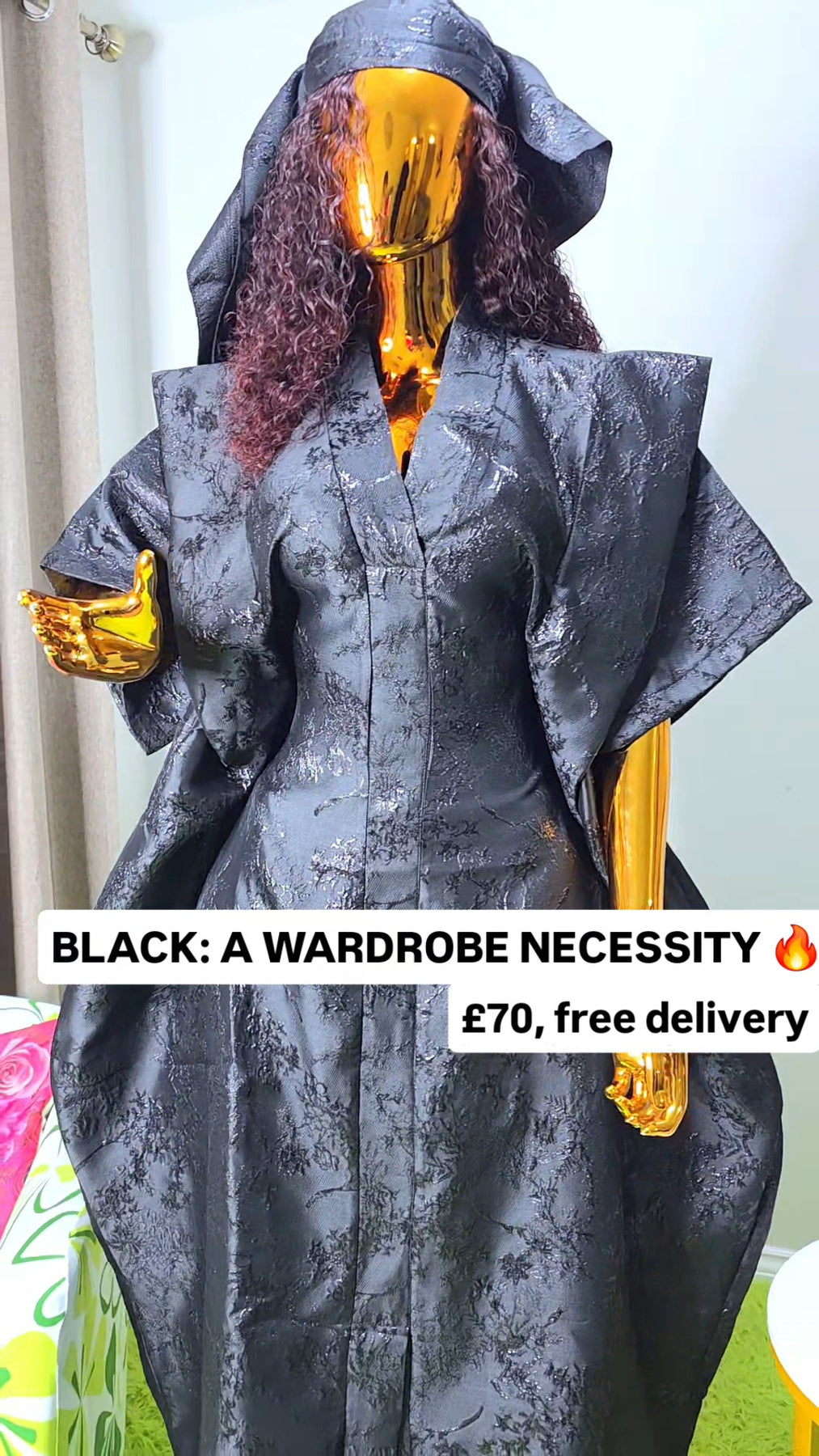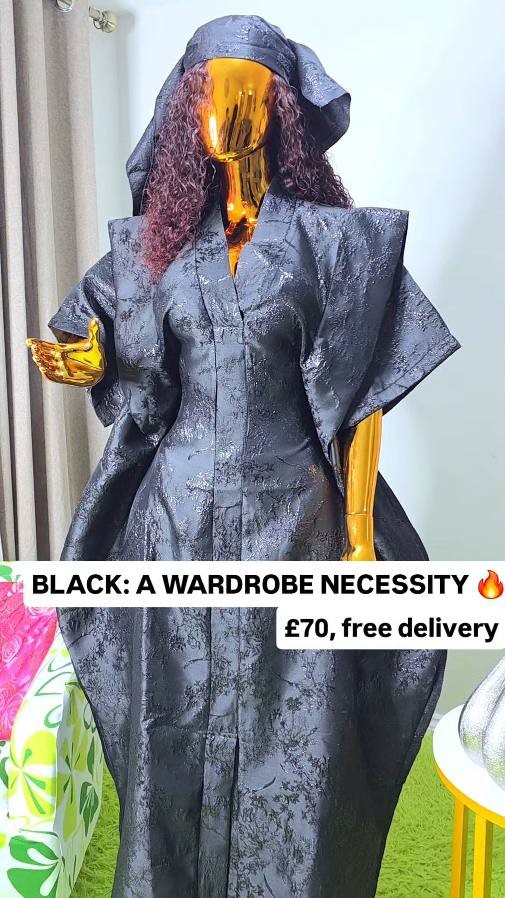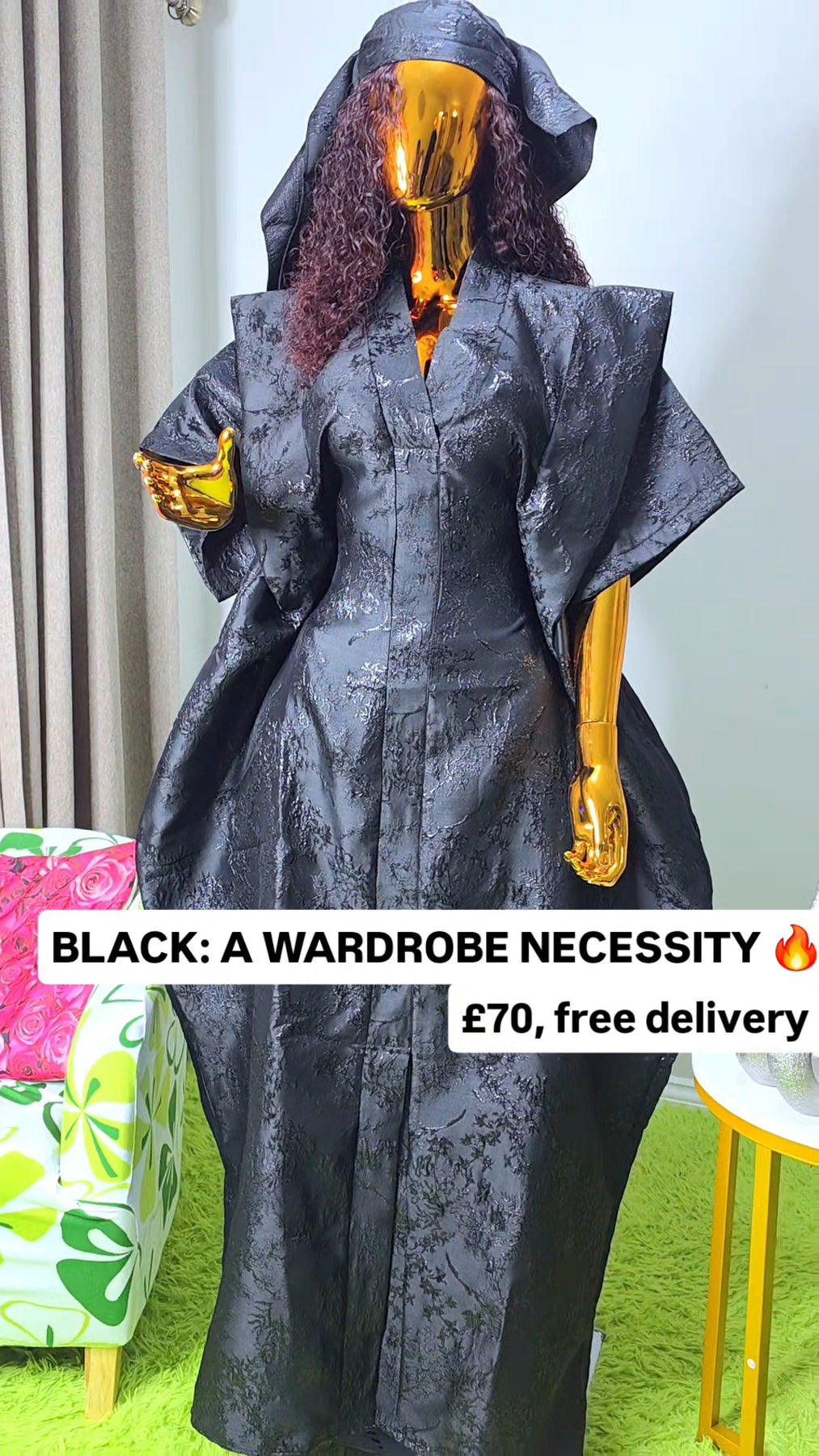 Designed as a one size fits all silhouette, the boubou flows effortlessly on the body, offering comfort without compromising sophistication. The relaxed structure makes it suitable for a wide range of body shapes, while the luxurious brocade elevates it beyond everyday wear.