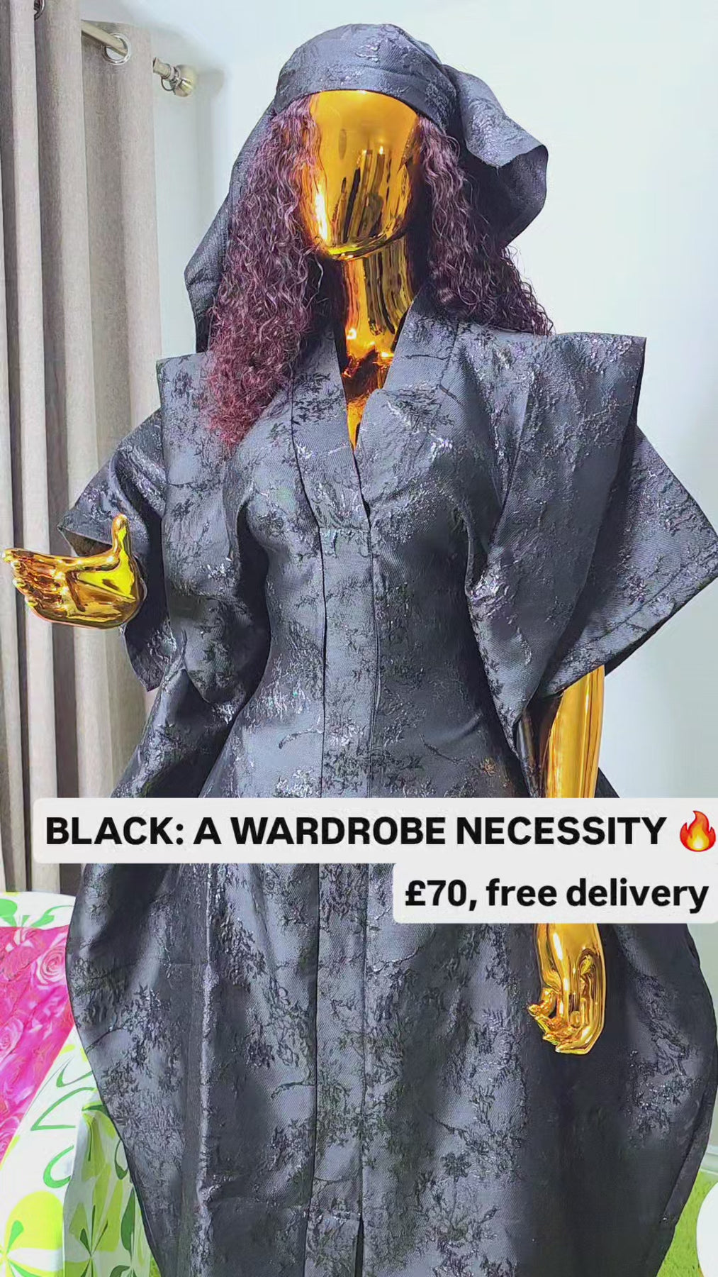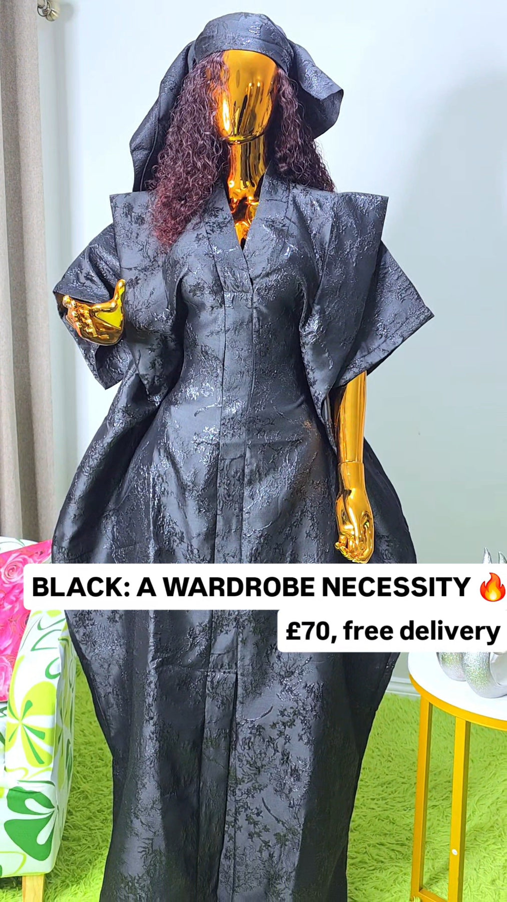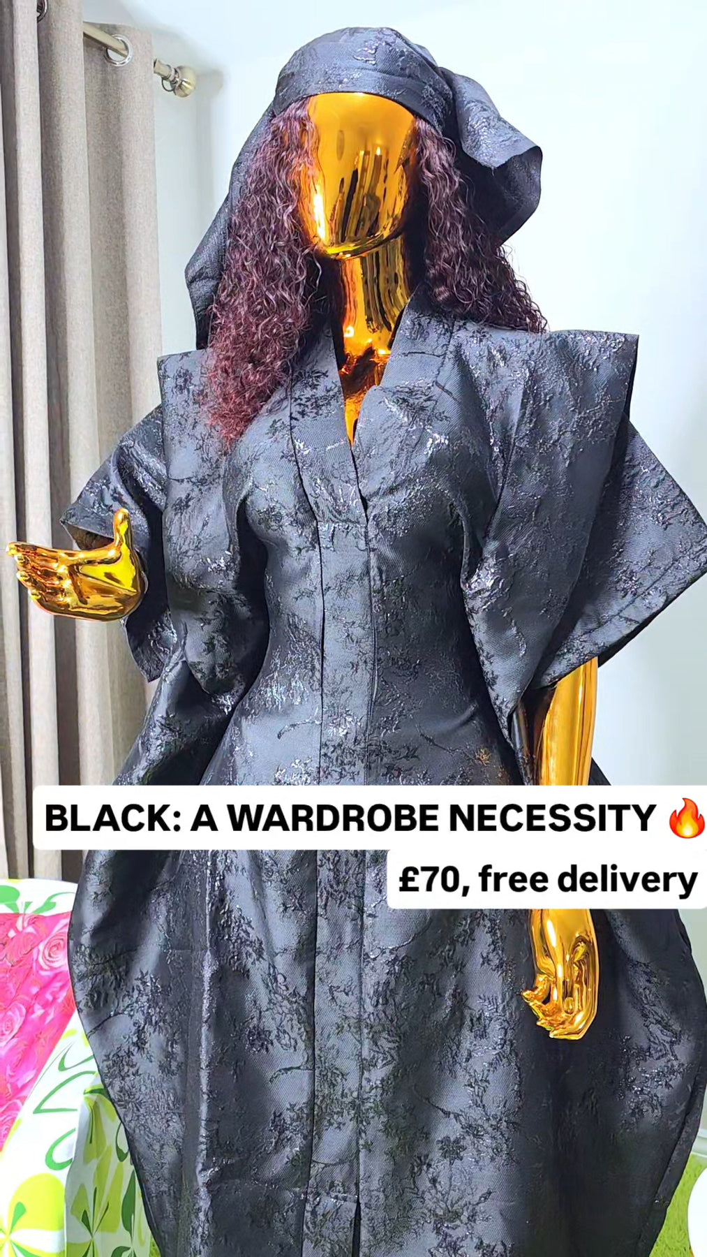 Designed as a one size fits all silhouette, the boubou flows effortlessly on the body, offering comfort without compromising sophistication. The relaxed structure makes it suitable for a wide range of body shapes, while the luxurious brocade elevates it beyond everyday wear.