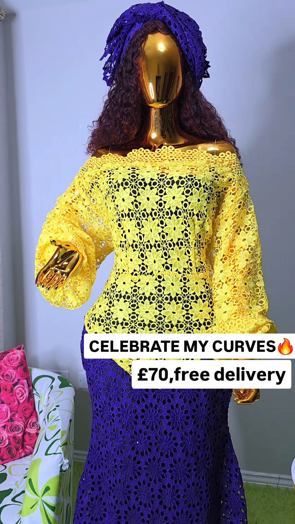 YellowPurple Celebrate My Curves Cord Lace African Women’s Dress | Free 24-Hour UK Delivery