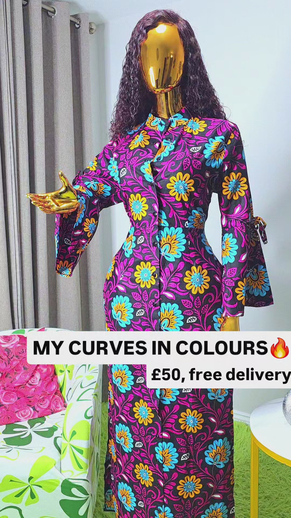 Celebrate bold beauty and confident curves with My Curves in Colours — the vibrant Ankara shirt dress crafted for African women who love expressive prints and flattering silhouettes.