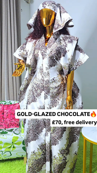 Make a statement in African luxury fashion with the GOLD-GLAZED CHOCOLATE bubu, because when you walk in, Queens don’t just see you, they remember you. 💎