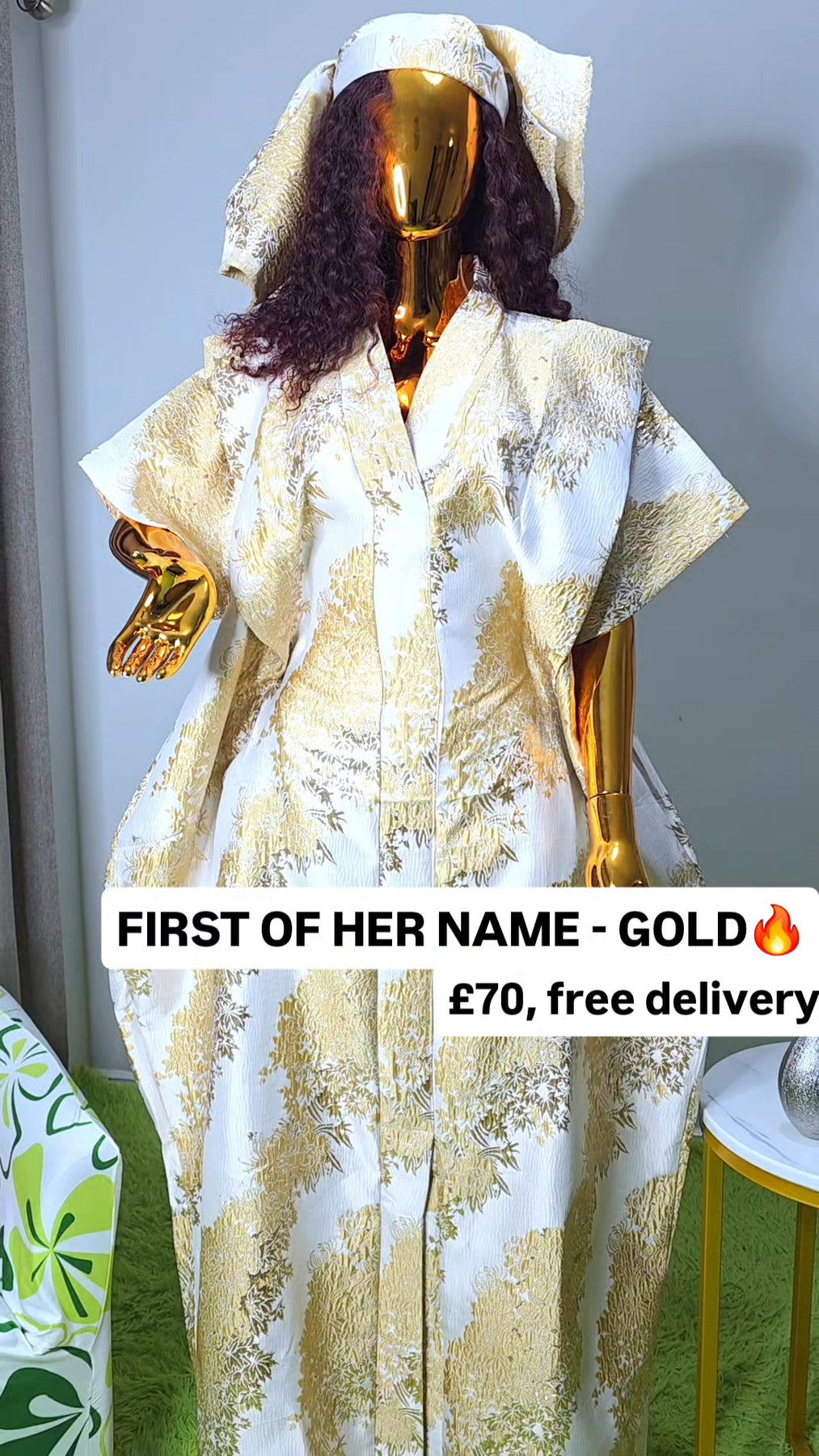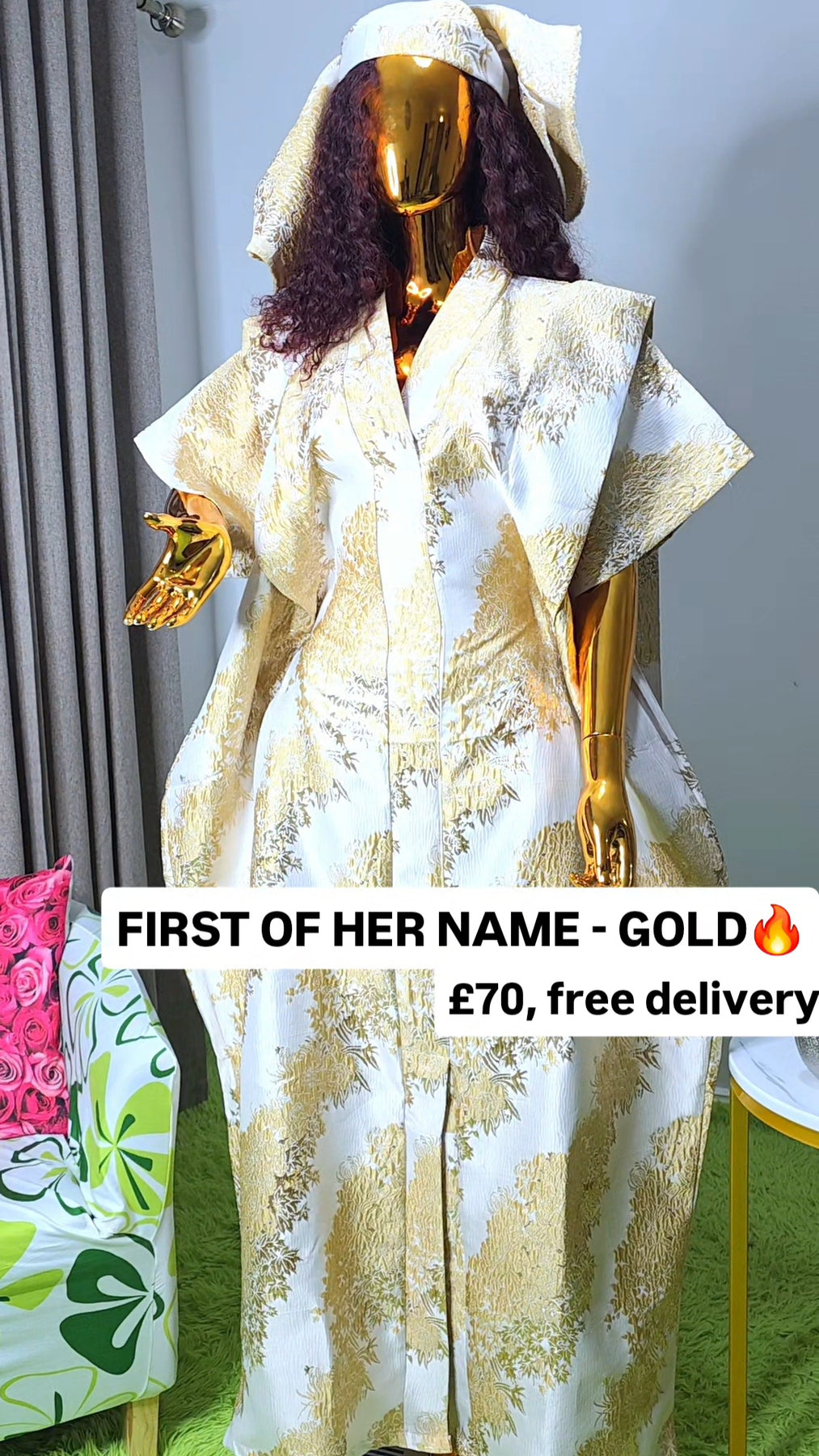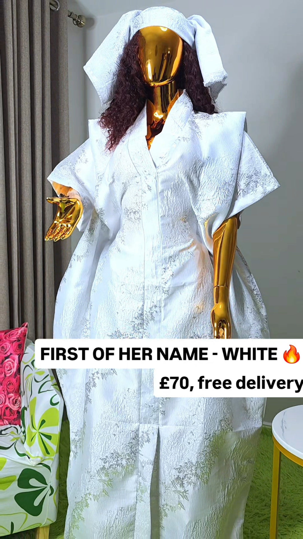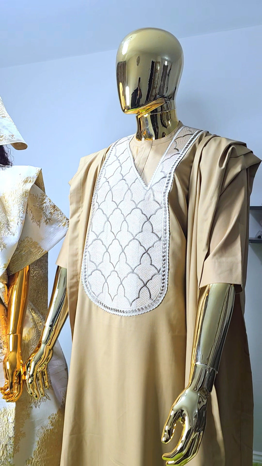 Designed as a one size fits all silhouette, the boubou flows effortlessly on the body, offering comfort without compromising sophistication. The relaxed structure makes it suitable for a wide range of body shapes, while the luxurious brocade elevates it beyond everyday wear.