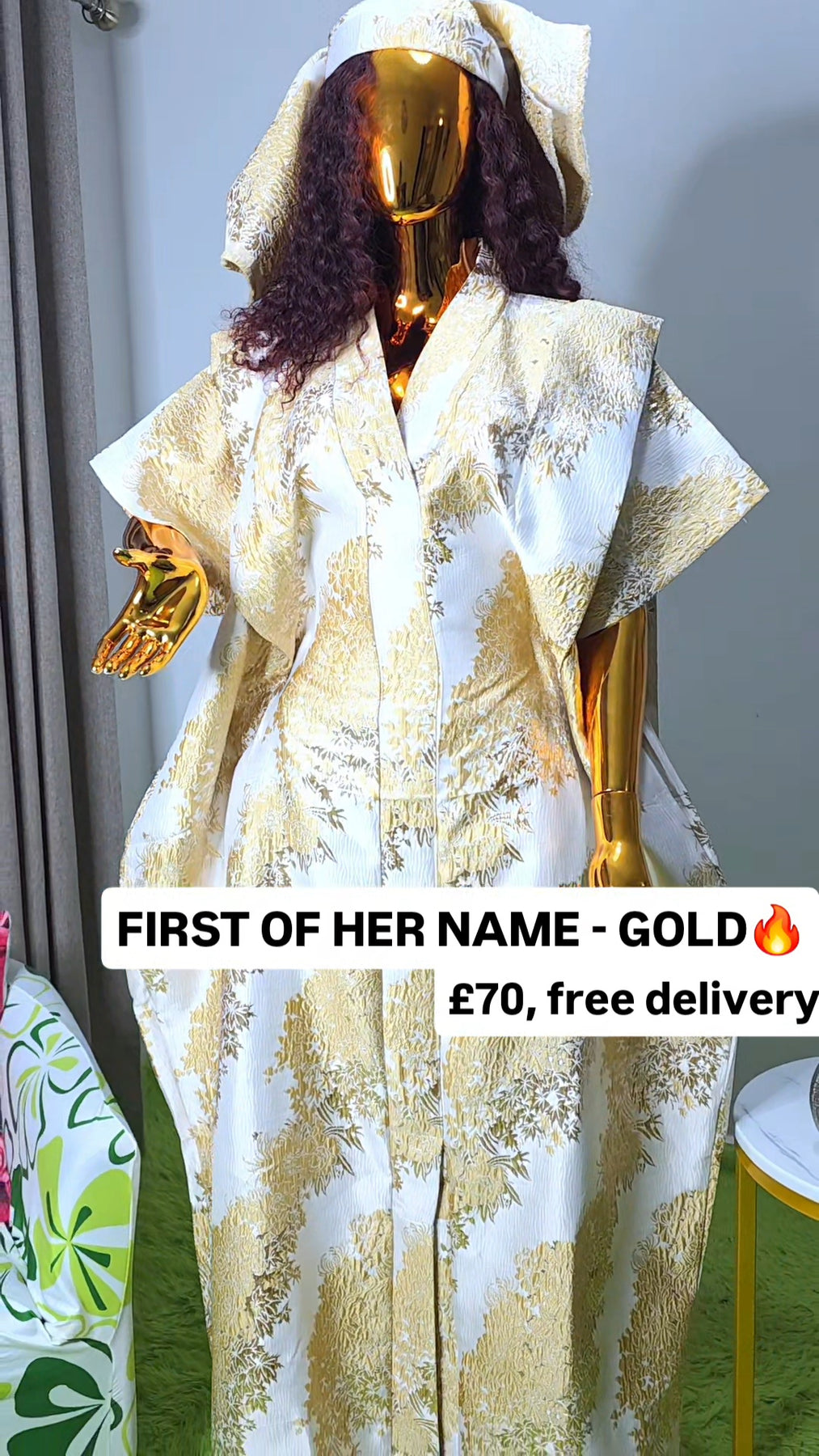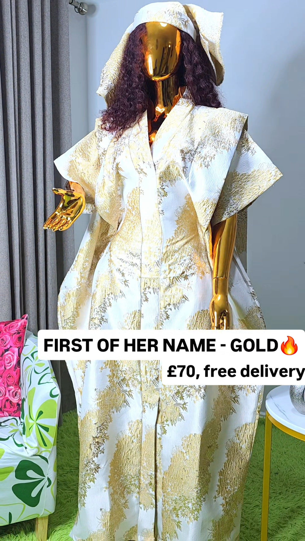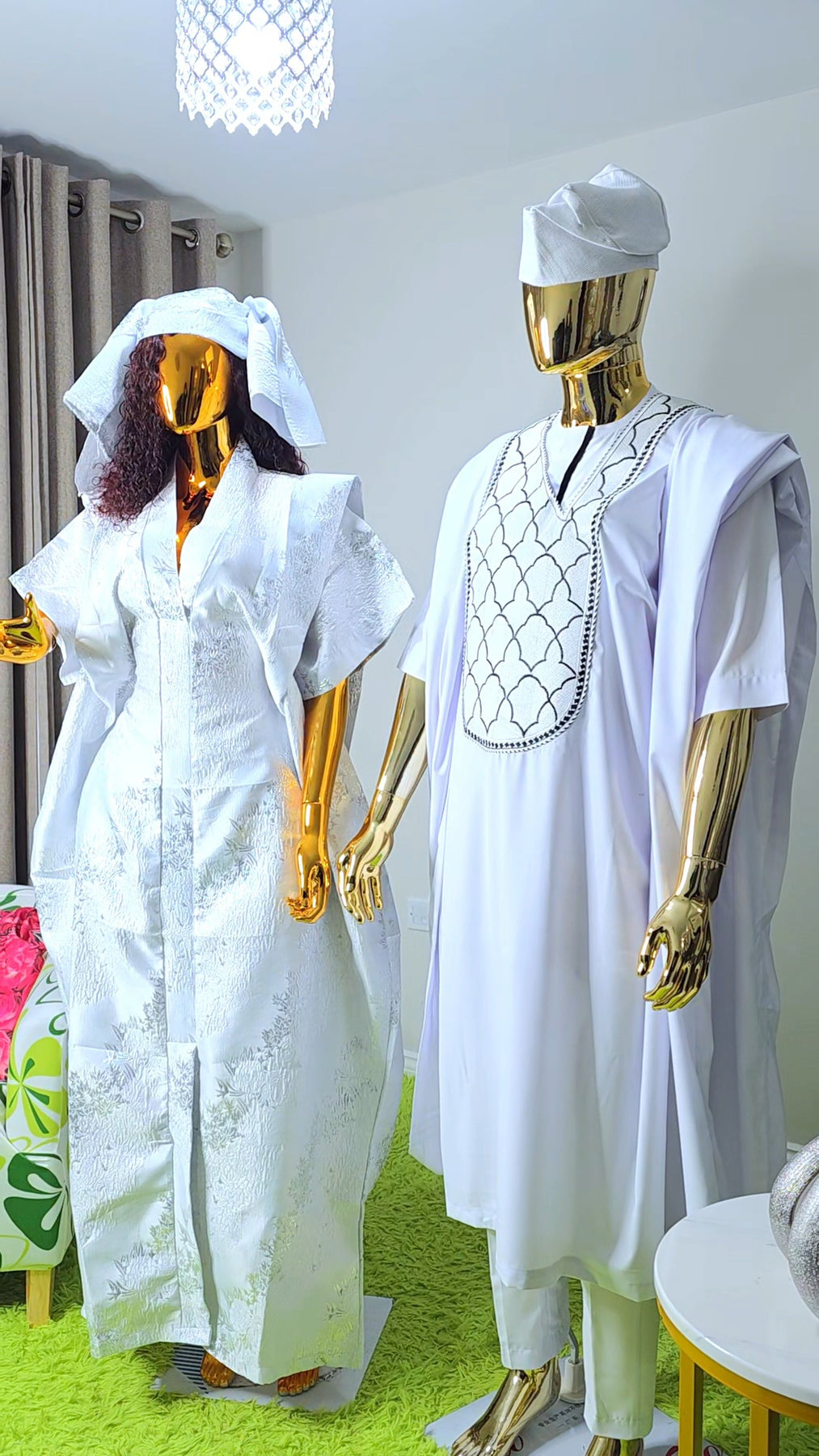 Designed as a one size fits all silhouette, the boubou flows effortlessly on the body, offering comfort without compromising sophistication. The relaxed structure makes it suitable for a wide range of body shapes, while the luxurious brocade elevates it beyond everyday wear.