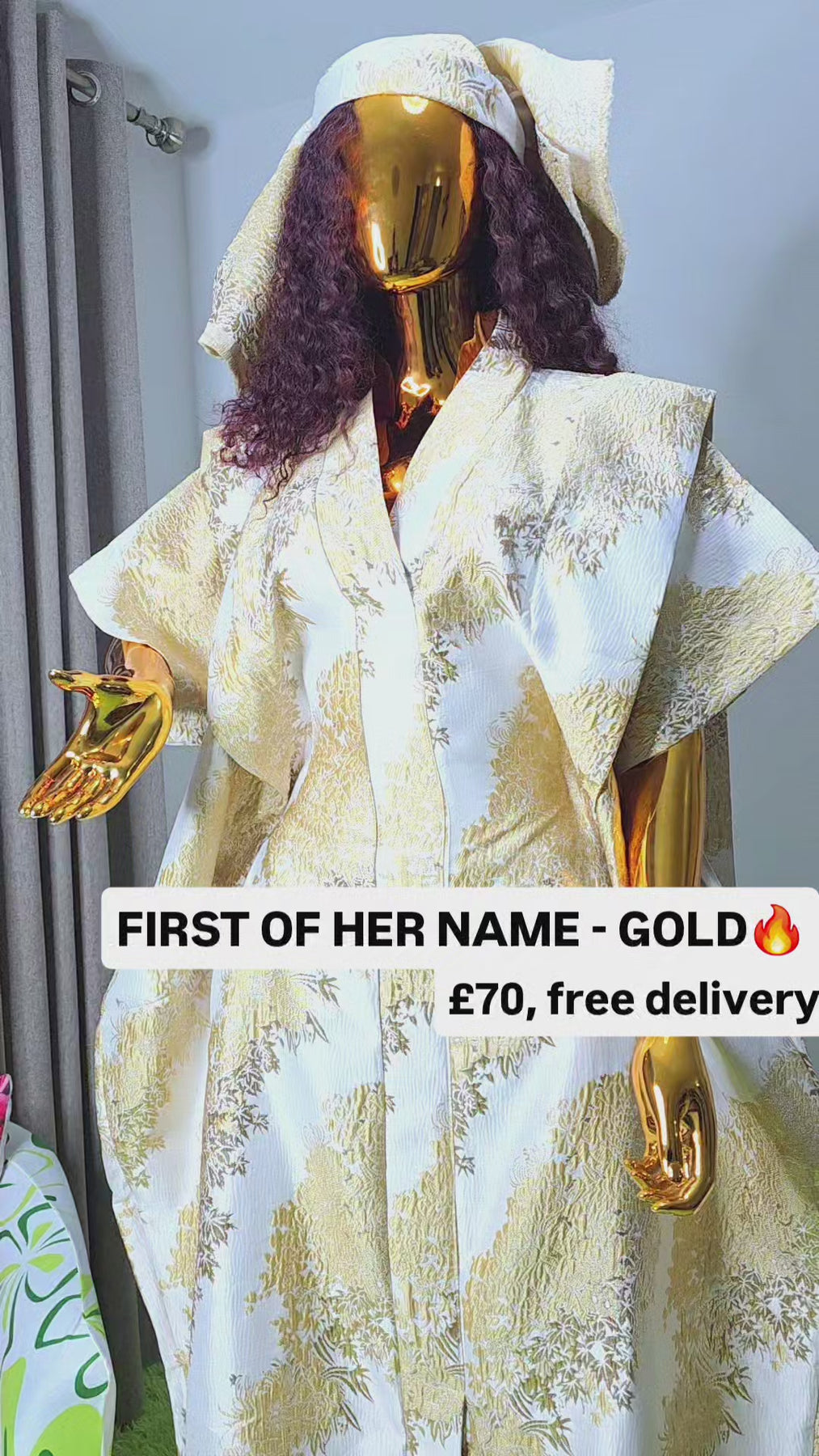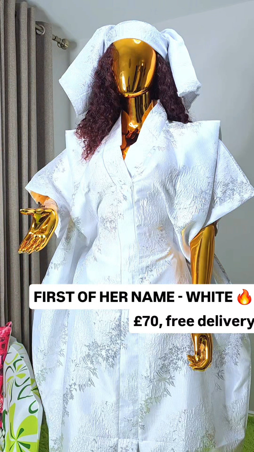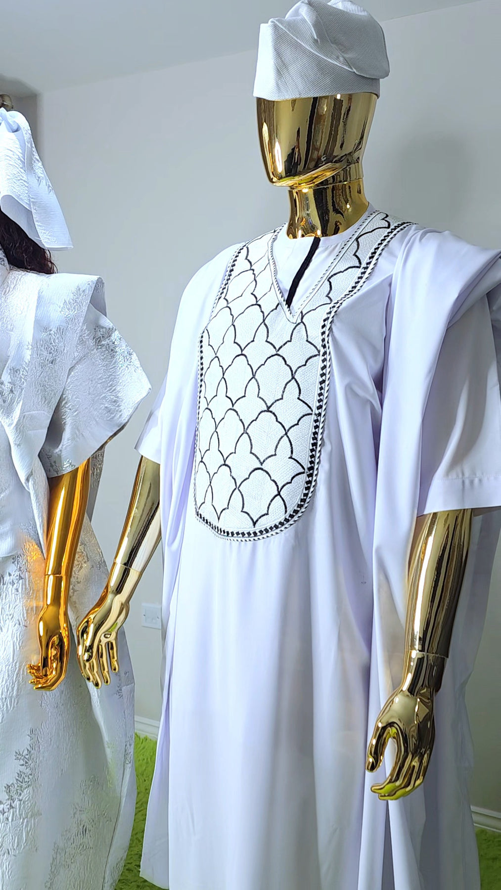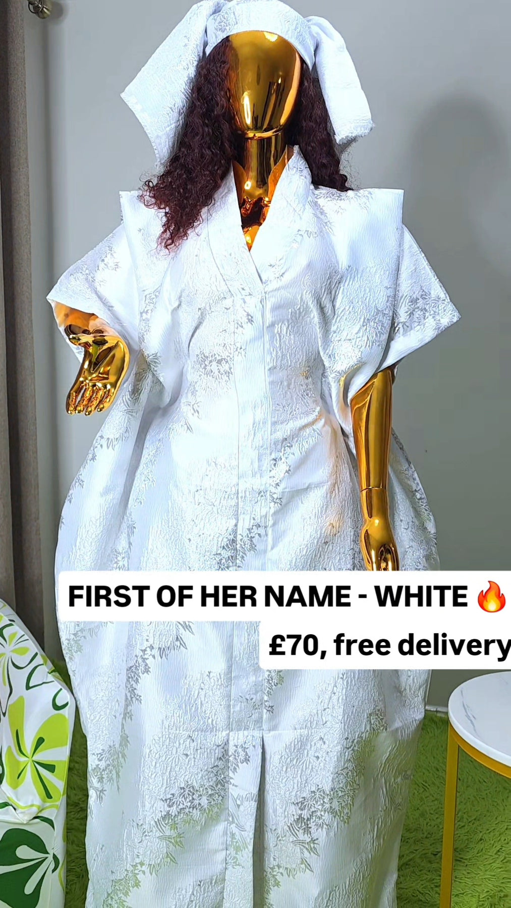 Designed as a one size fits all silhouette, the boubou flows effortlessly on the body, offering comfort without compromising sophistication. The relaxed structure makes it suitable for a wide range of body shapes, while the luxurious brocade elevates it beyond everyday wear.