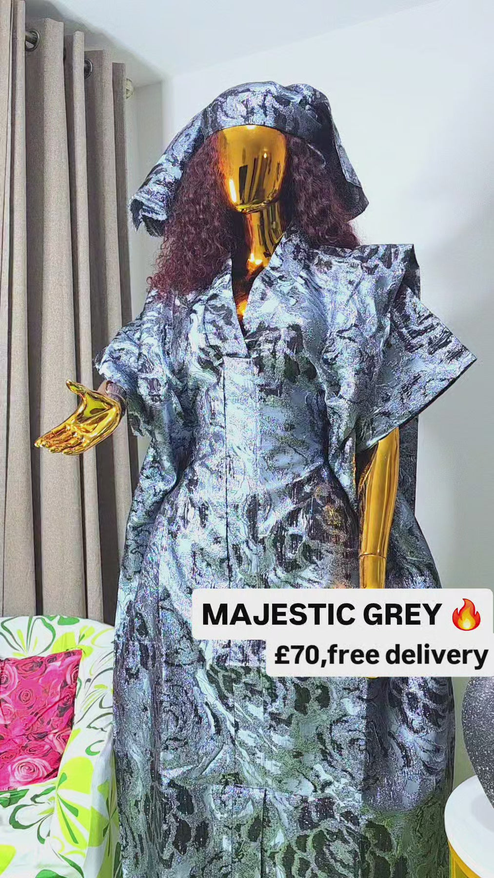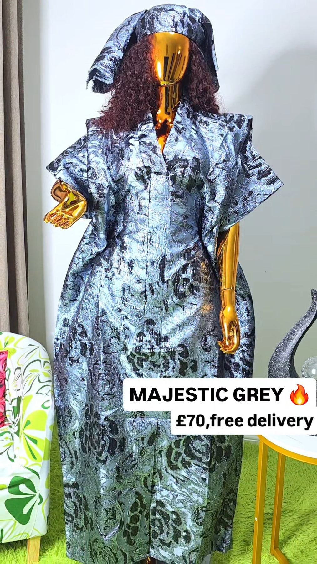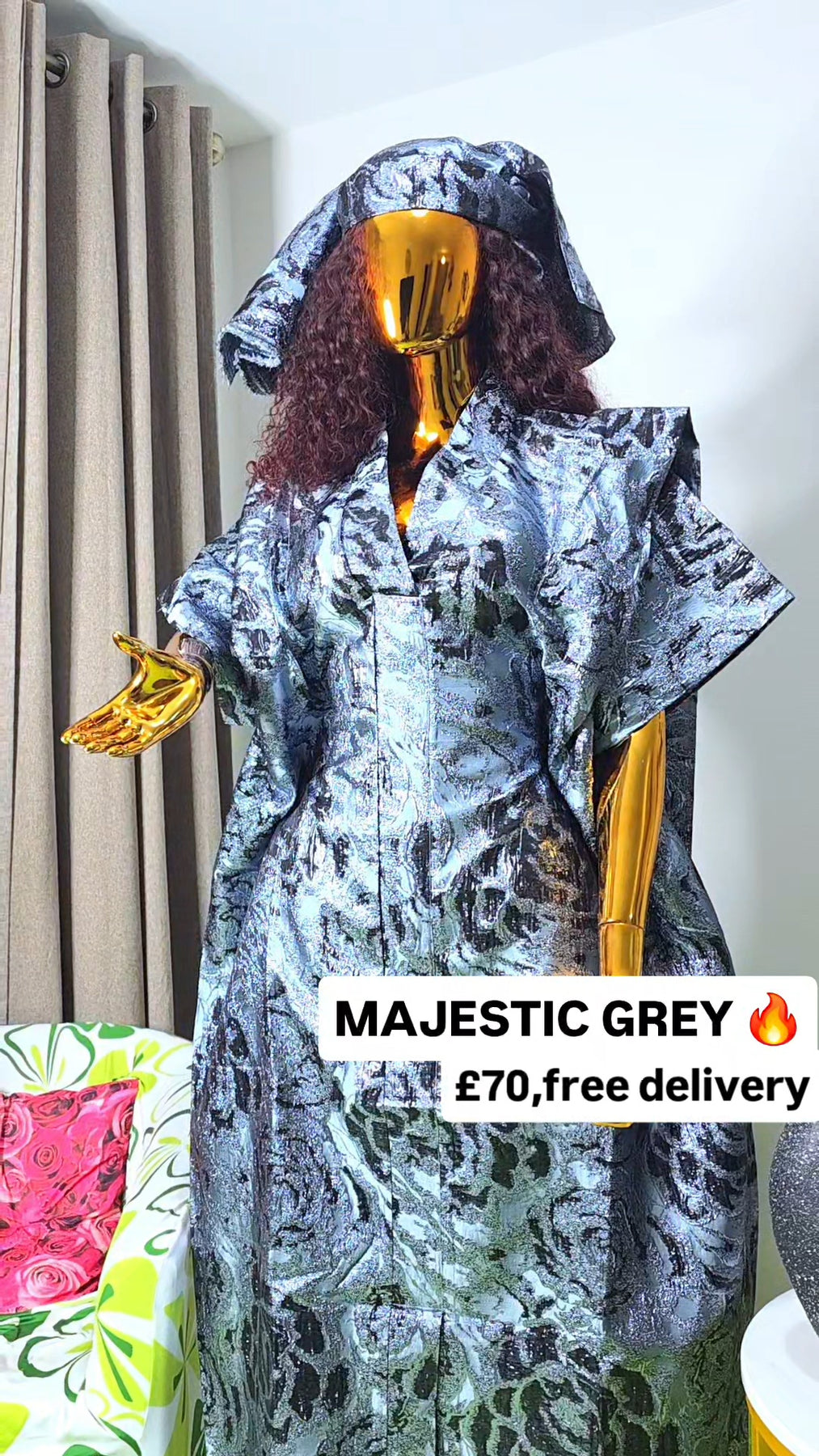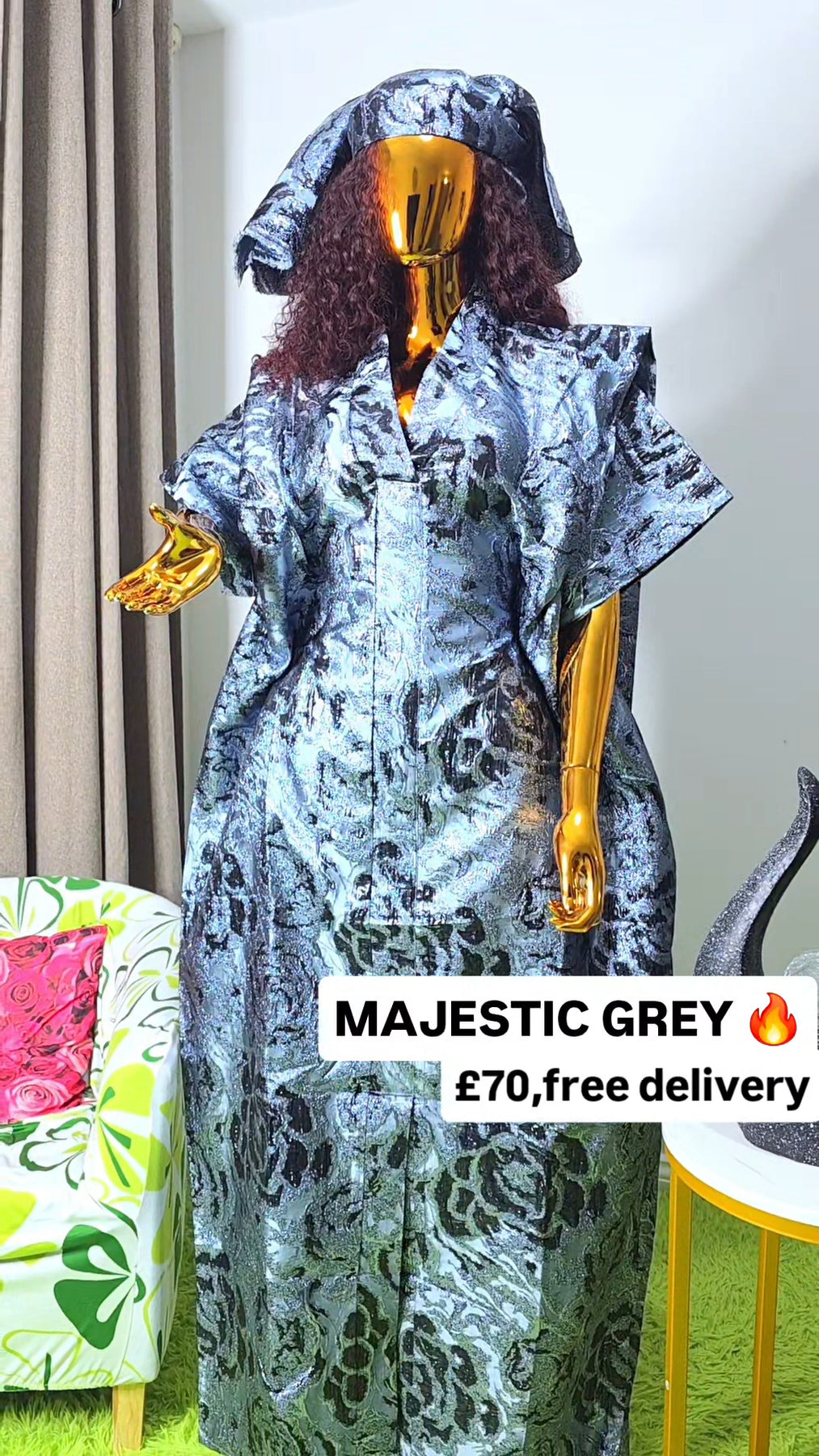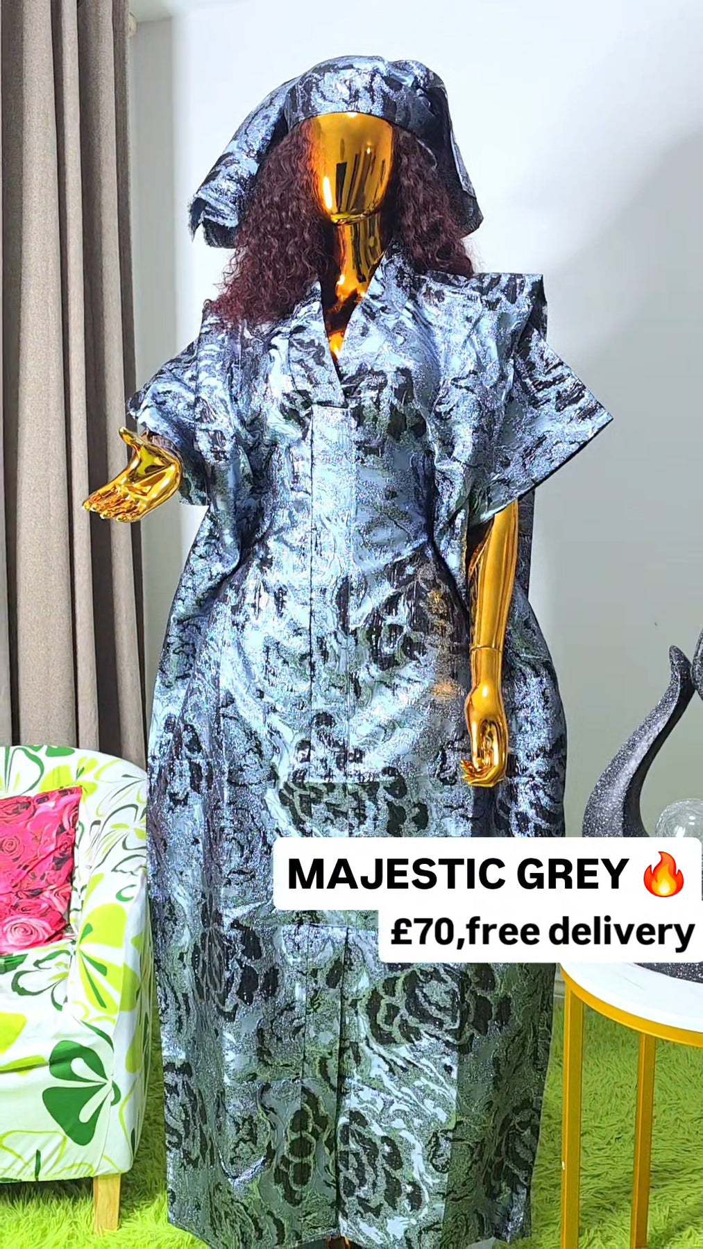 Perfect for weddings, celebrations, church services, dinners, and special occasions, the Majestic Grey Brocade Boubou is a timeless wardrobe staple for women who love graceful African fashion with presence.