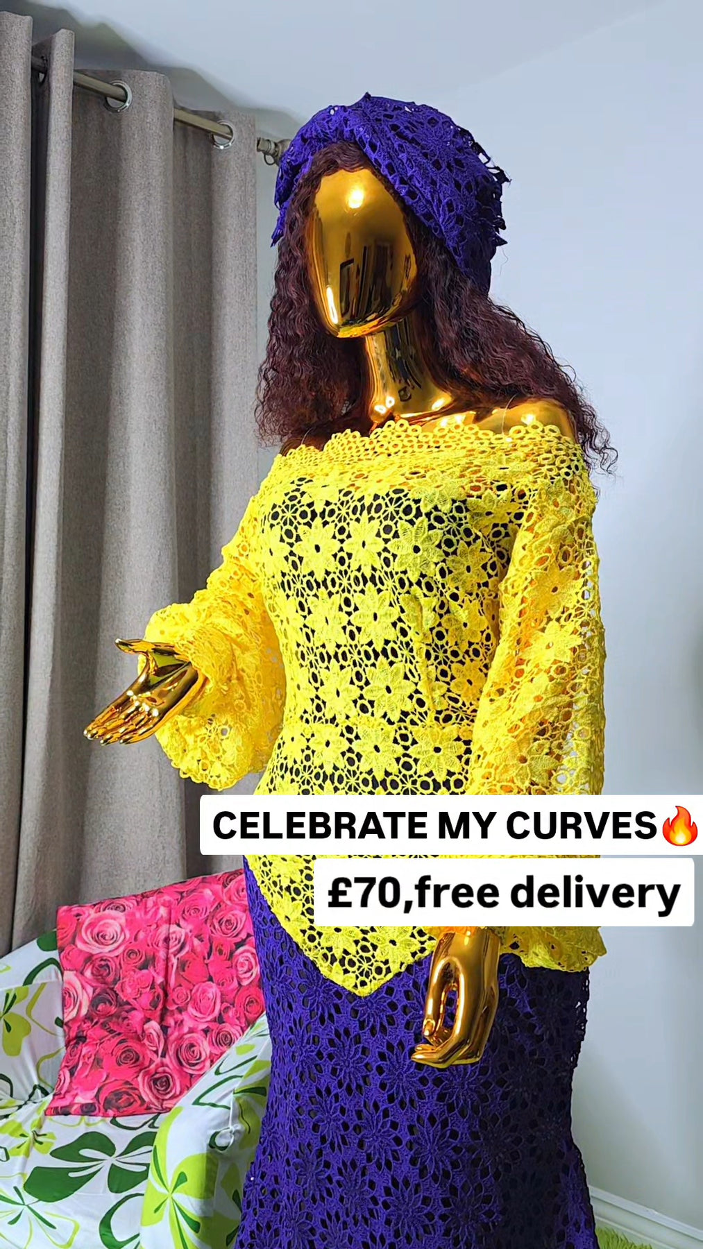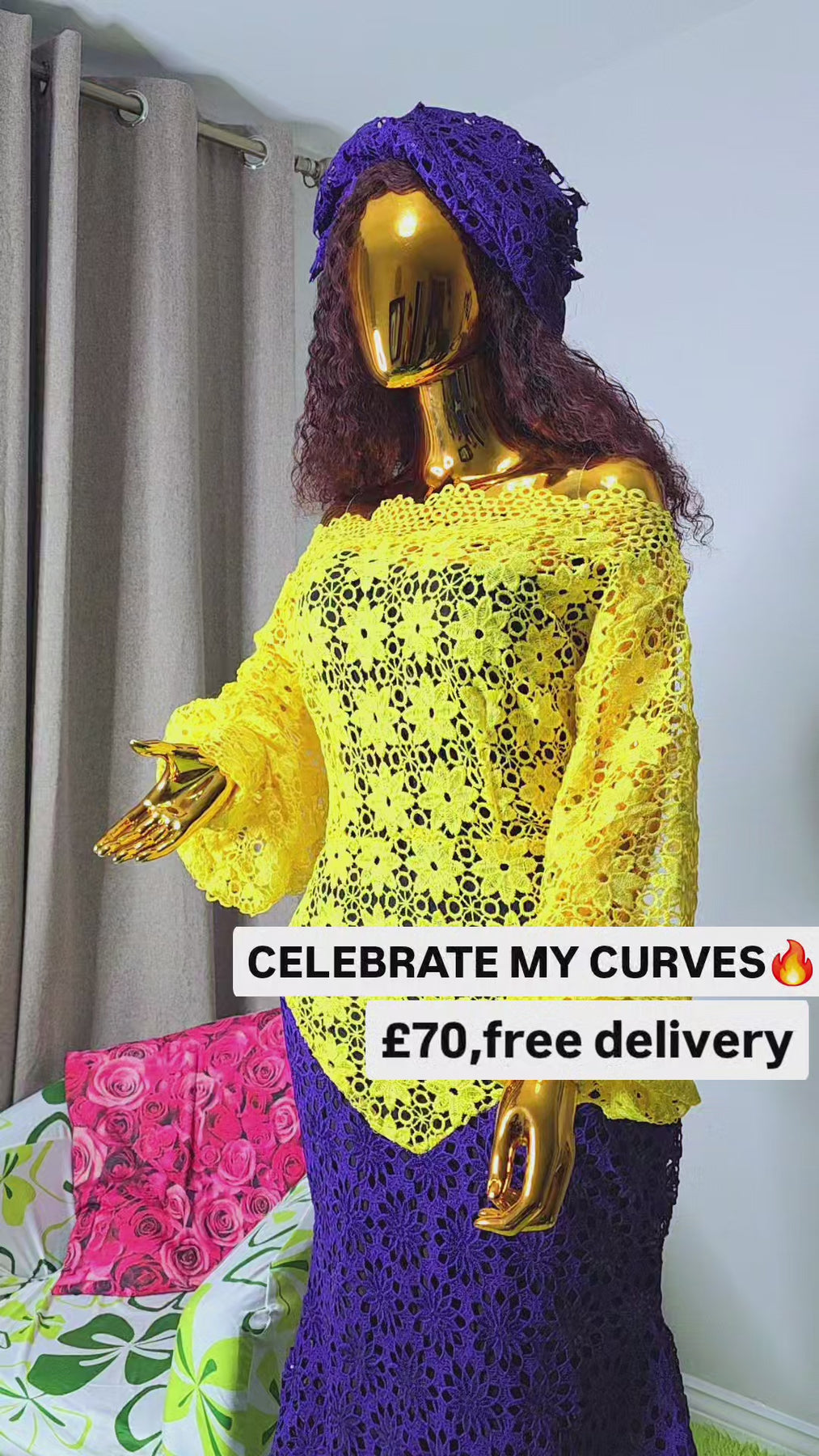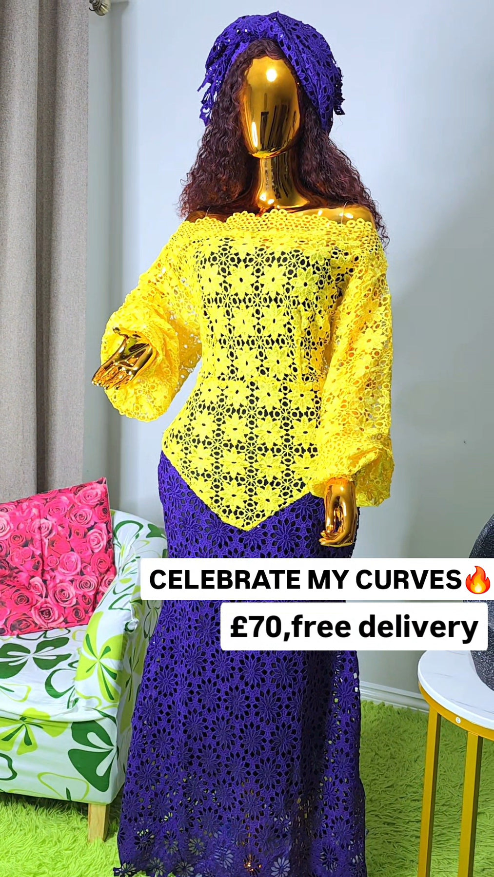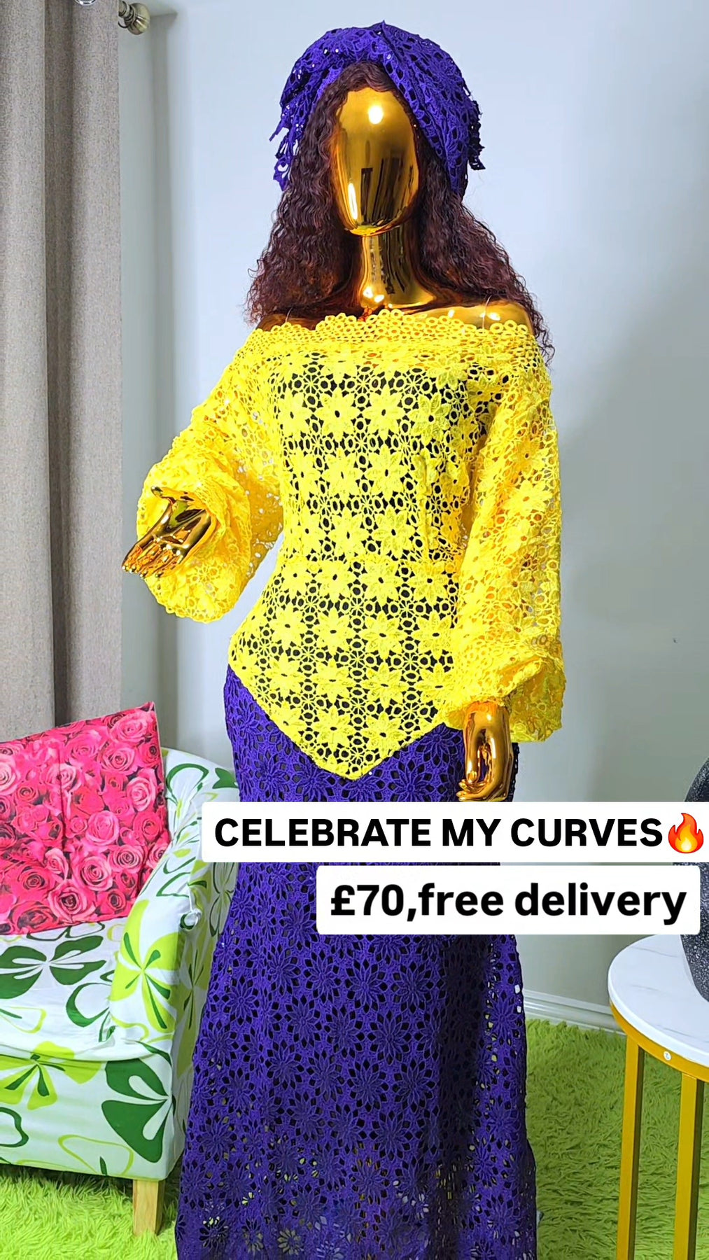 YellowPurple Celebrate My Curves Cord Lace African Women’s Dress | Free 24-Hour UK Delivery