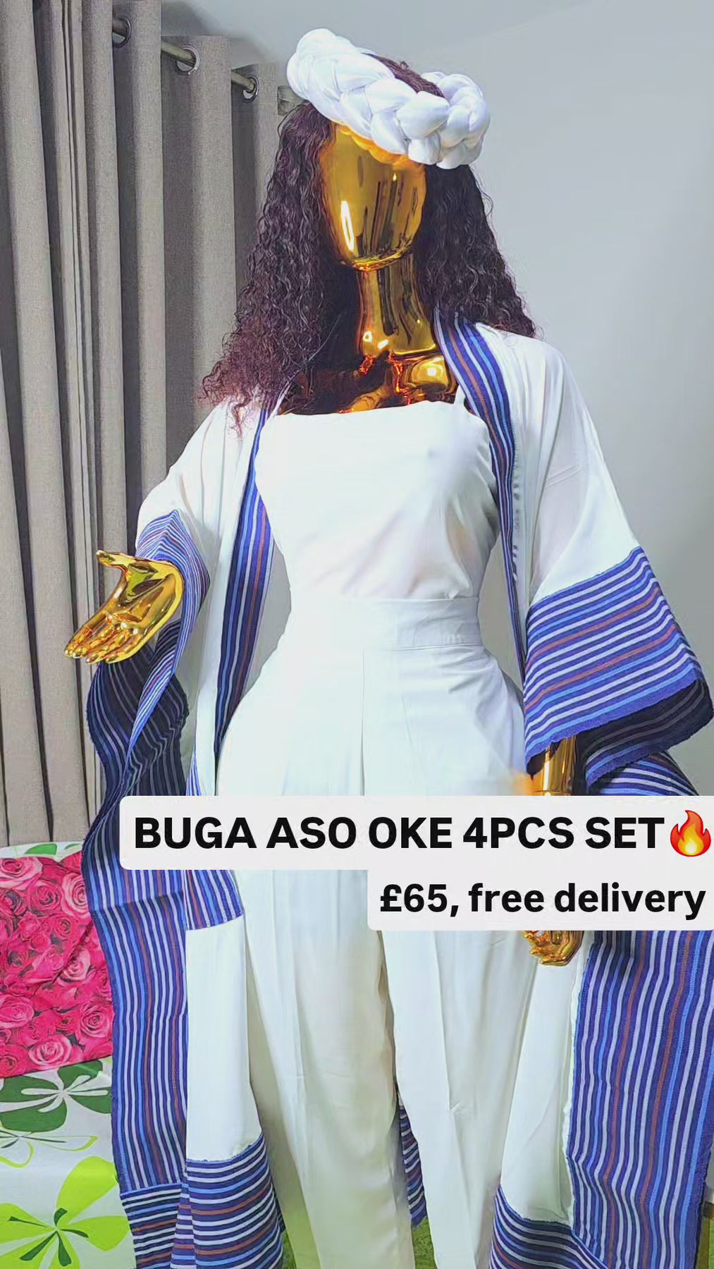 The BUGA Aso-Oke 4pcs Pants Set is designed for Queens who love to stand out with confidence and grace.